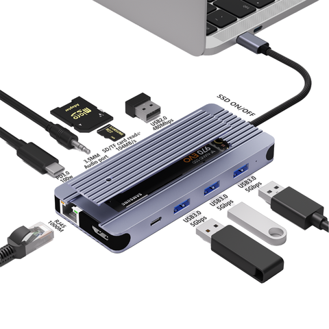 แท่น USB-C ฮับพร้อม USB3.0 12 1 USB2.0 * 3 HD-MI ข้อมูล RJ45 PD SD TF 3.5 Audio ฮาร์ดไดรฟ์ M.2 NVMe NVMe